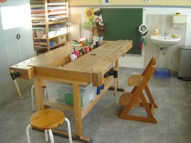 In der Werkstatt können Kinder wie Erwachsene an verschiedenen Werkstücken arbeiten, ihrer Kreativität freien Lauf lassen und sich im Umgang mit verschiedenen Materialien selbst erfahren.